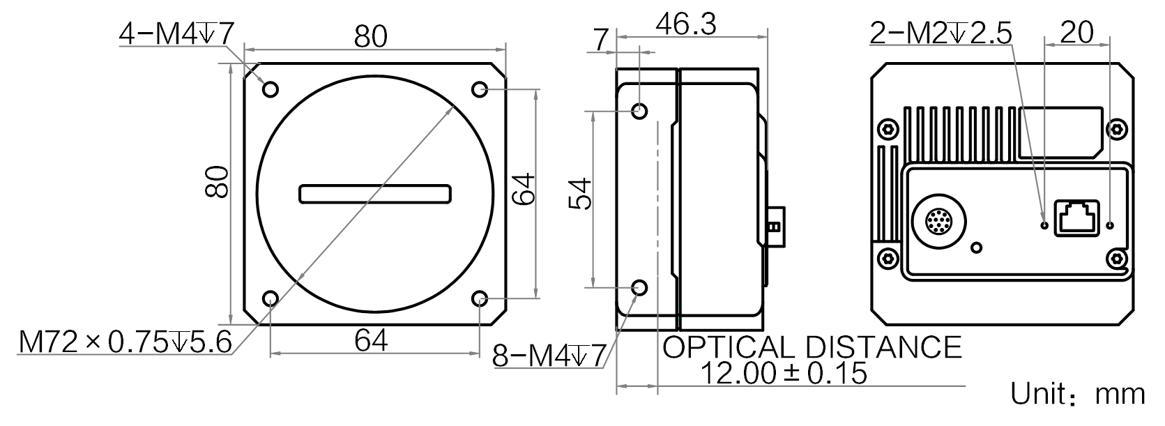 | 结构 | 镜头接口 | M72*0.75,法兰后焦12 mm |