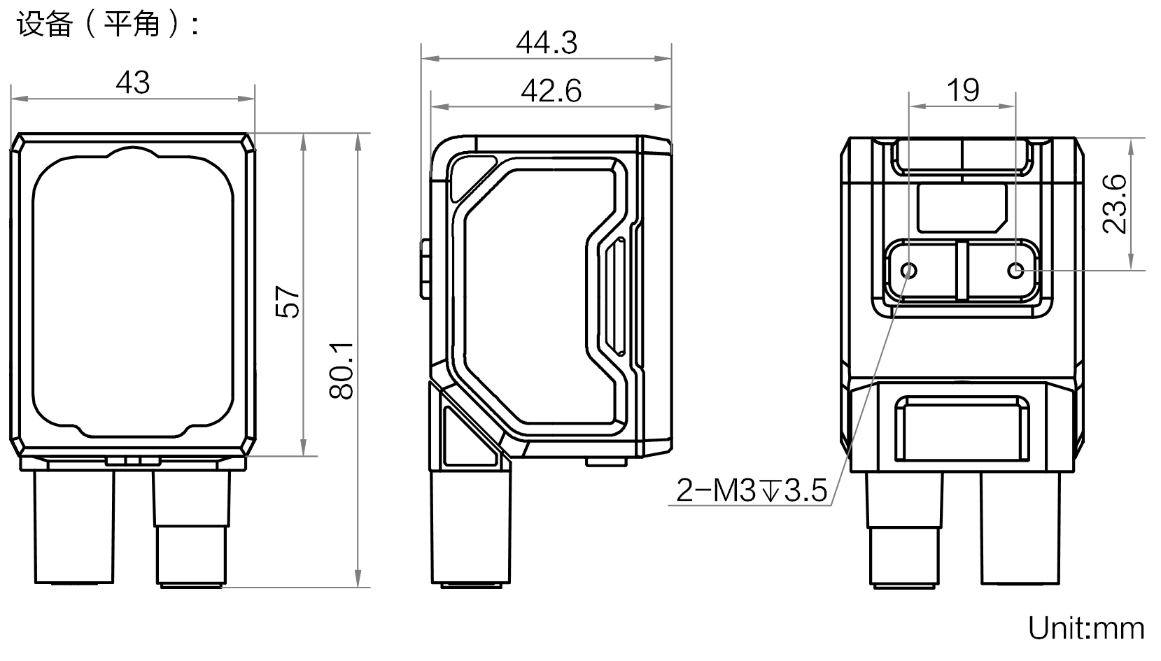 | 外形尺寸 | 平角:80.1 mm × 43 mm × 44.3 mm 直角:58.5 mm × 43 mm × 65.4 mm |