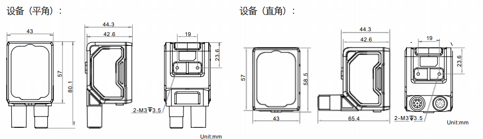 | 外形尺寸 | 平角:80.1 mm × 43 mm × 44.3 mm 直角:58.5 mm × 43 mm × 65.4 mm |