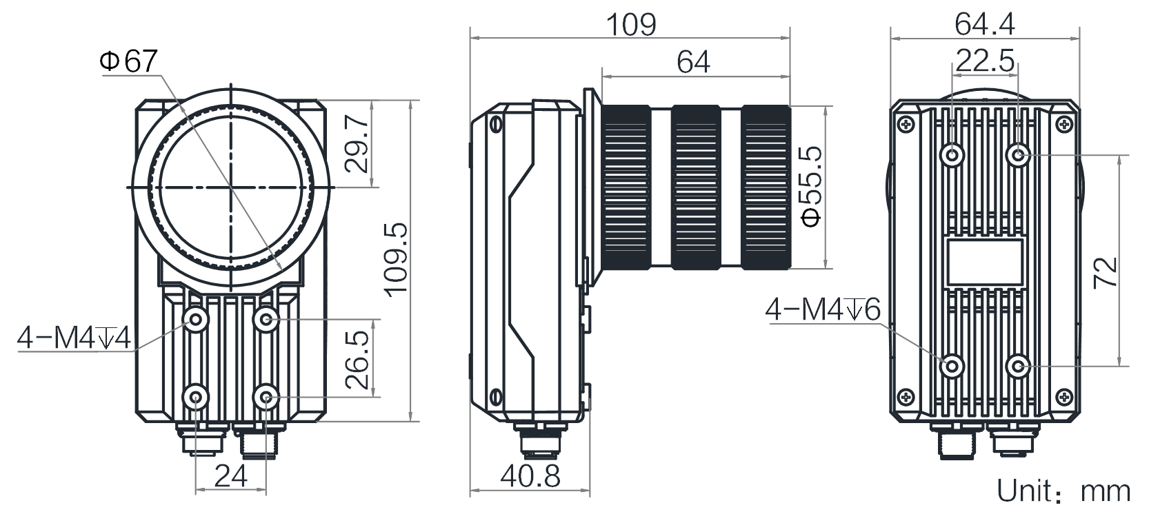 | 数字I/O | 12-pin M12接头提供电源和I/O,包含3路光耦隔离输入(LineIn 0/1/2),3路光耦隔离输出(LineOut 0/1/2),1路RS-232输入,1路RS-232输出 | |