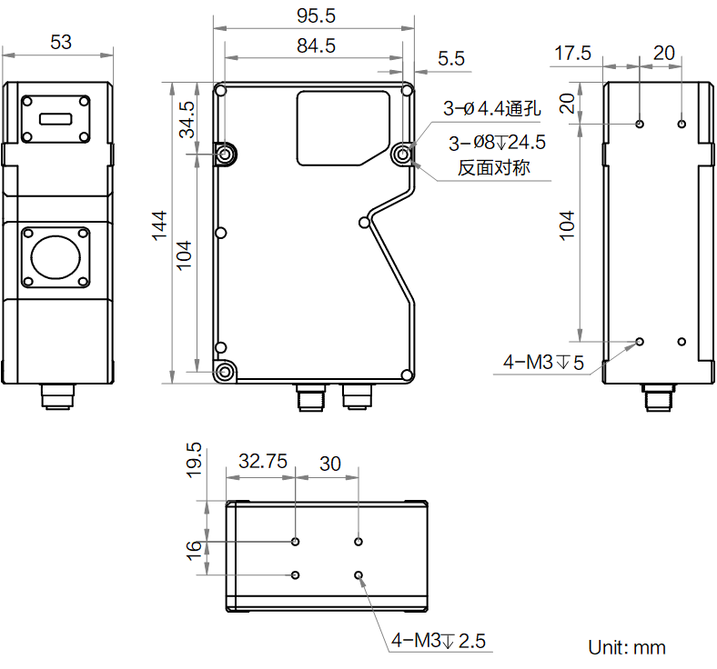 | 结构 | 外形尺寸 | 144 mm × 95.5 mm × 53 mm |