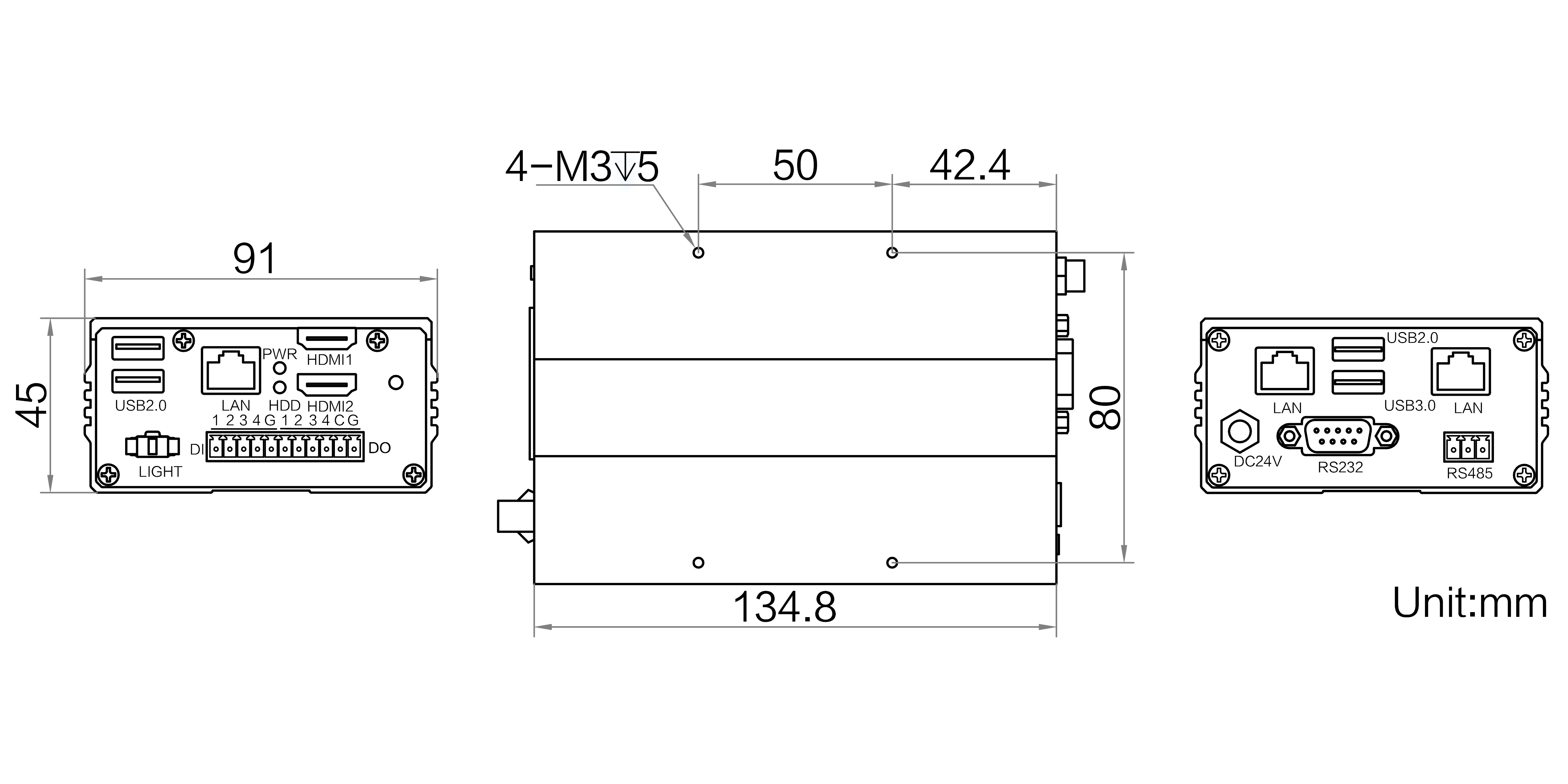 | 串口 | 1路半双工RS-485,1路RS-232 | |