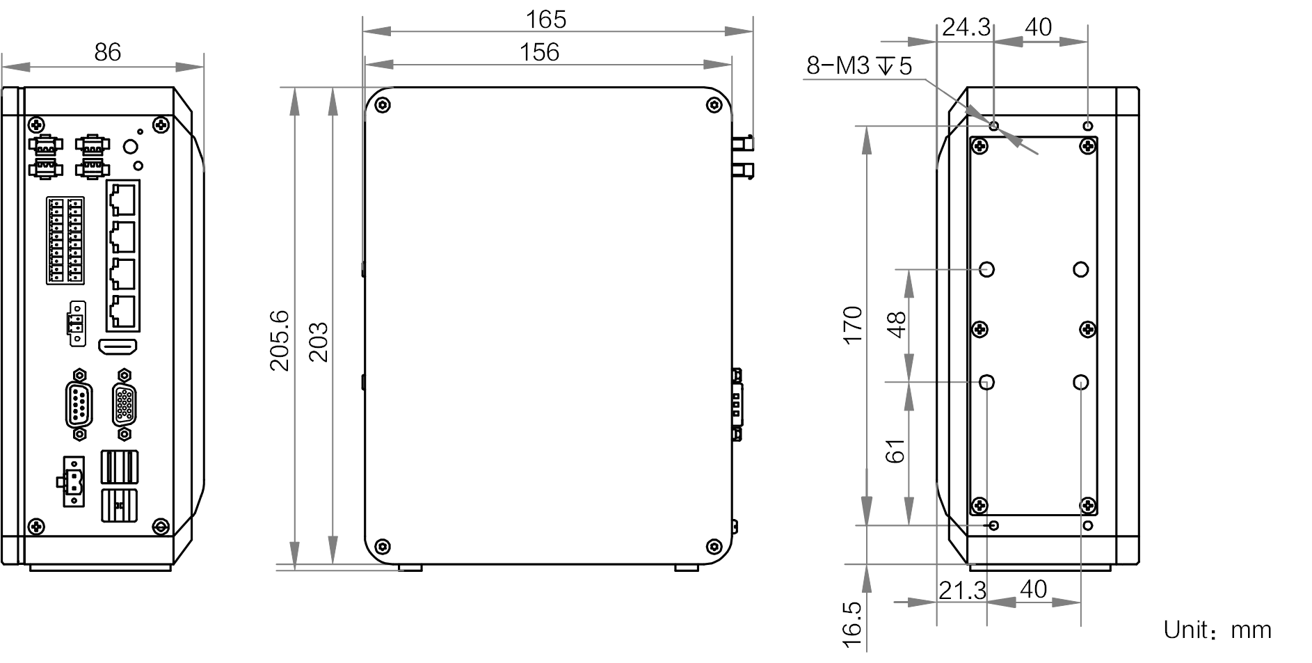 | 结构 | 外形尺寸 | 166 mm × 205.6 mm × 86 mm |