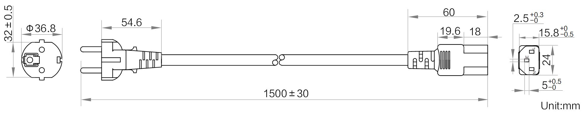 | 型号 | 型号 | 交流电源线_韩标_两插_C13_1.5米 |