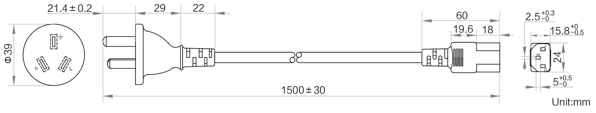 | 型号 | 型号 | 交流电源线_阿根廷_三插_C13_1.5米 |