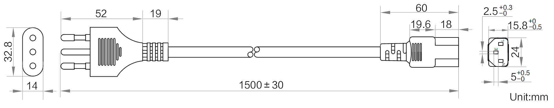 | 名称 | 交流电源线_意标_三插_C13_1.5米 | |