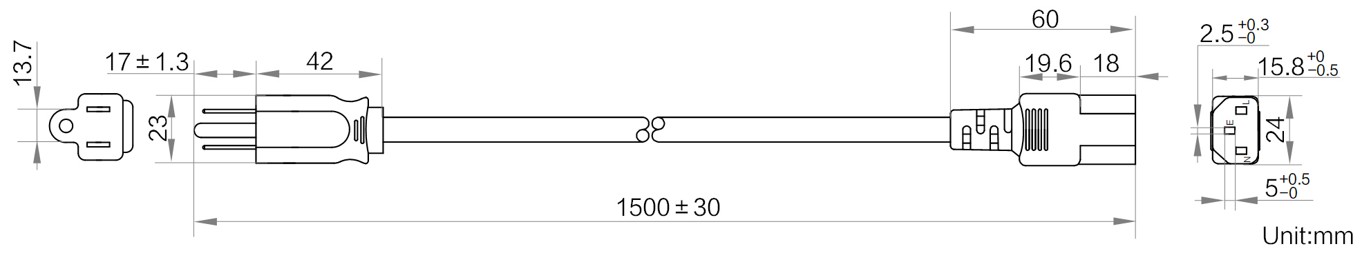 | 名称 | 交流电源线_台湾_三插_C13_1.5米 | |