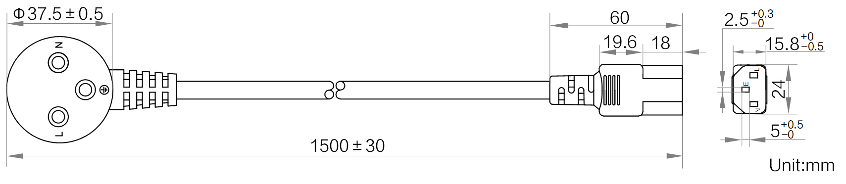 | 名称 | 交流电源线_以色列_弯三插_C13_1.5米 | |