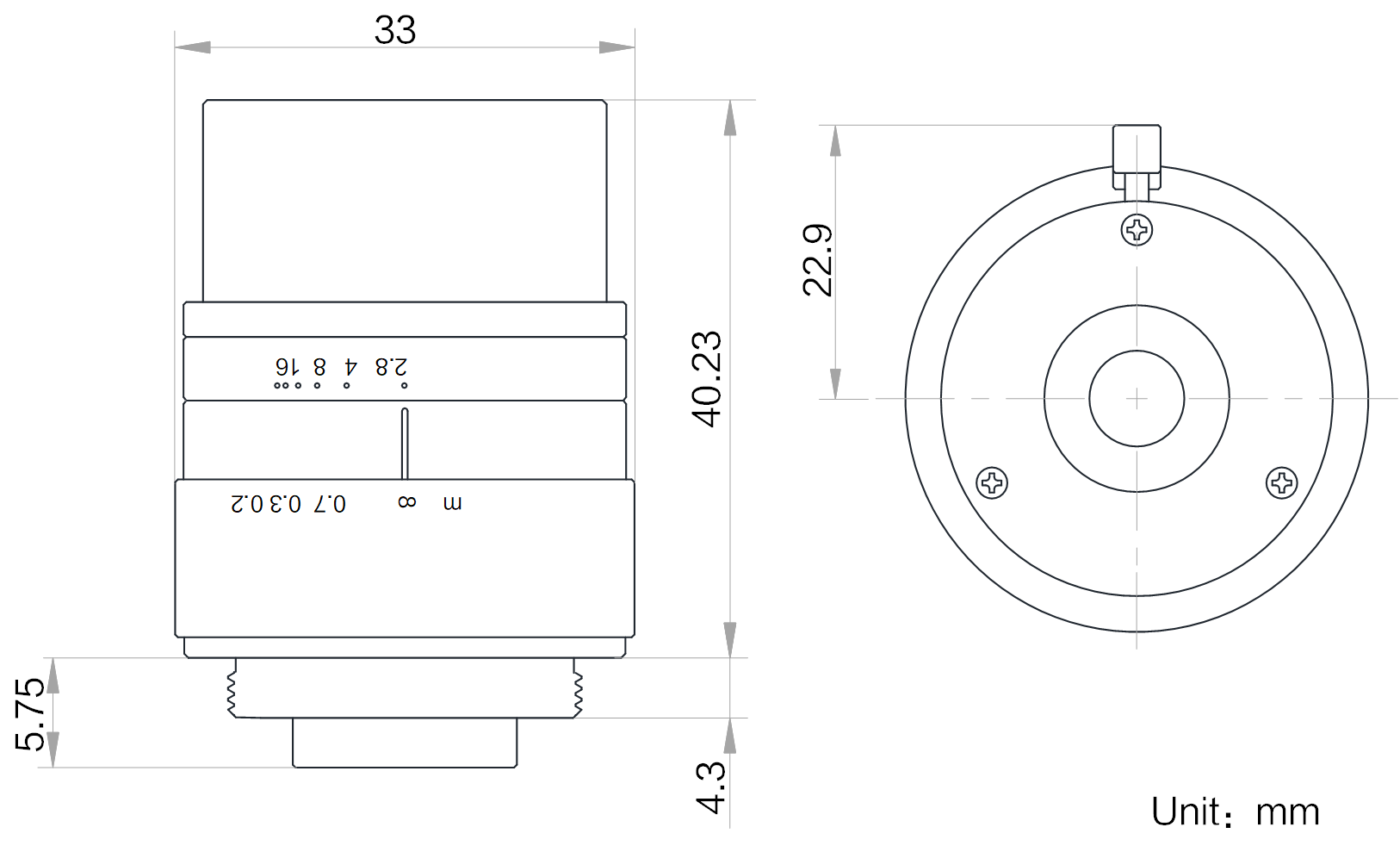 | 名称 | 12mm,F2.8,1/1.8",600万分辨率,C接口镜头 | |
