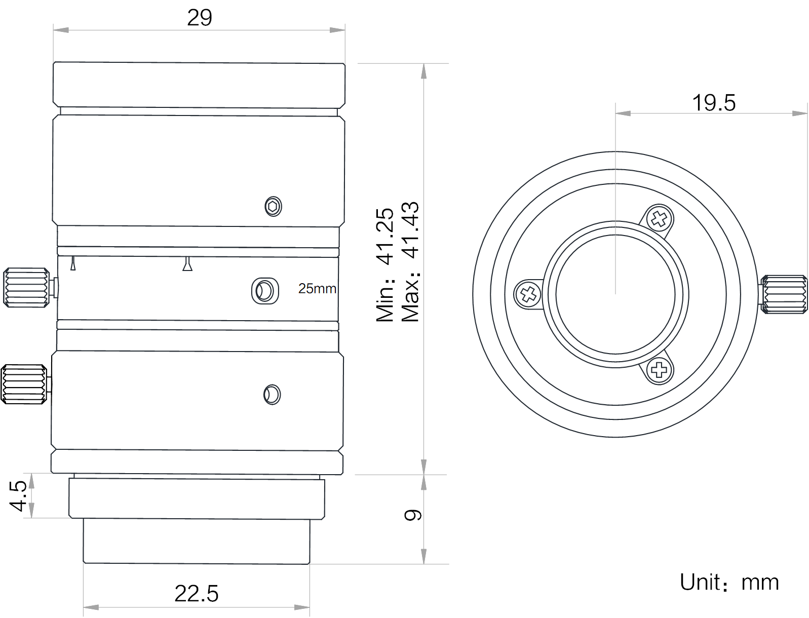 | 名称 | 25mm,F2.4,1/1.8",1000万分辨率,C接口镜头 | |