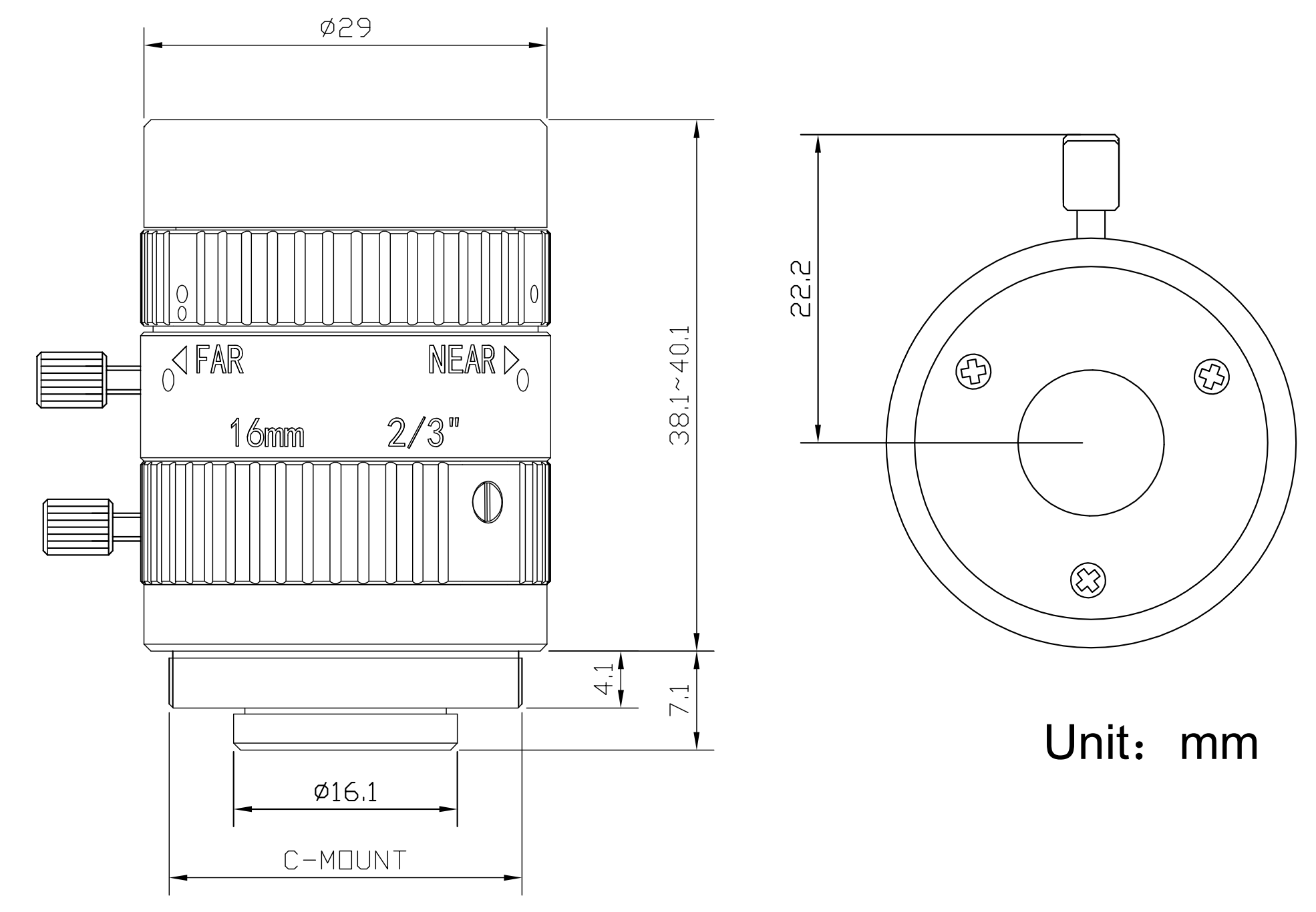 | 像面尺寸 | Φ11 mm(2/3'') | |