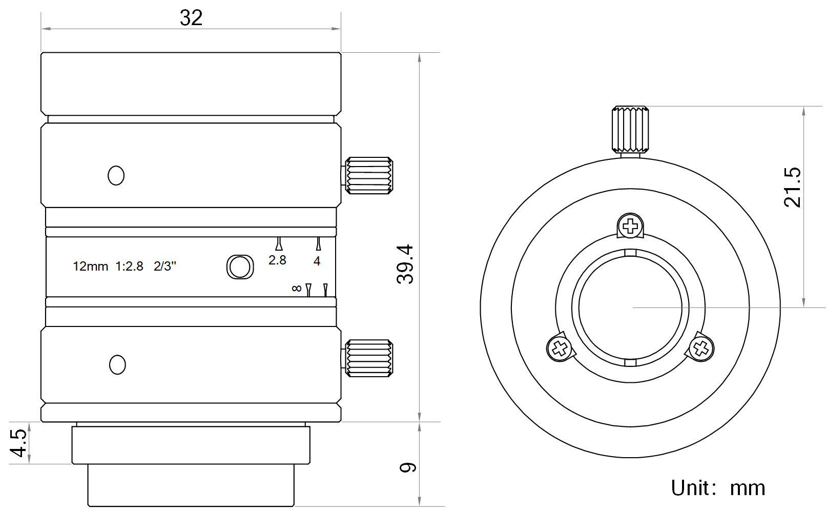 | 名称 | 12mm,F2.8,2/3",800万分辨率,C接口镜头 | |