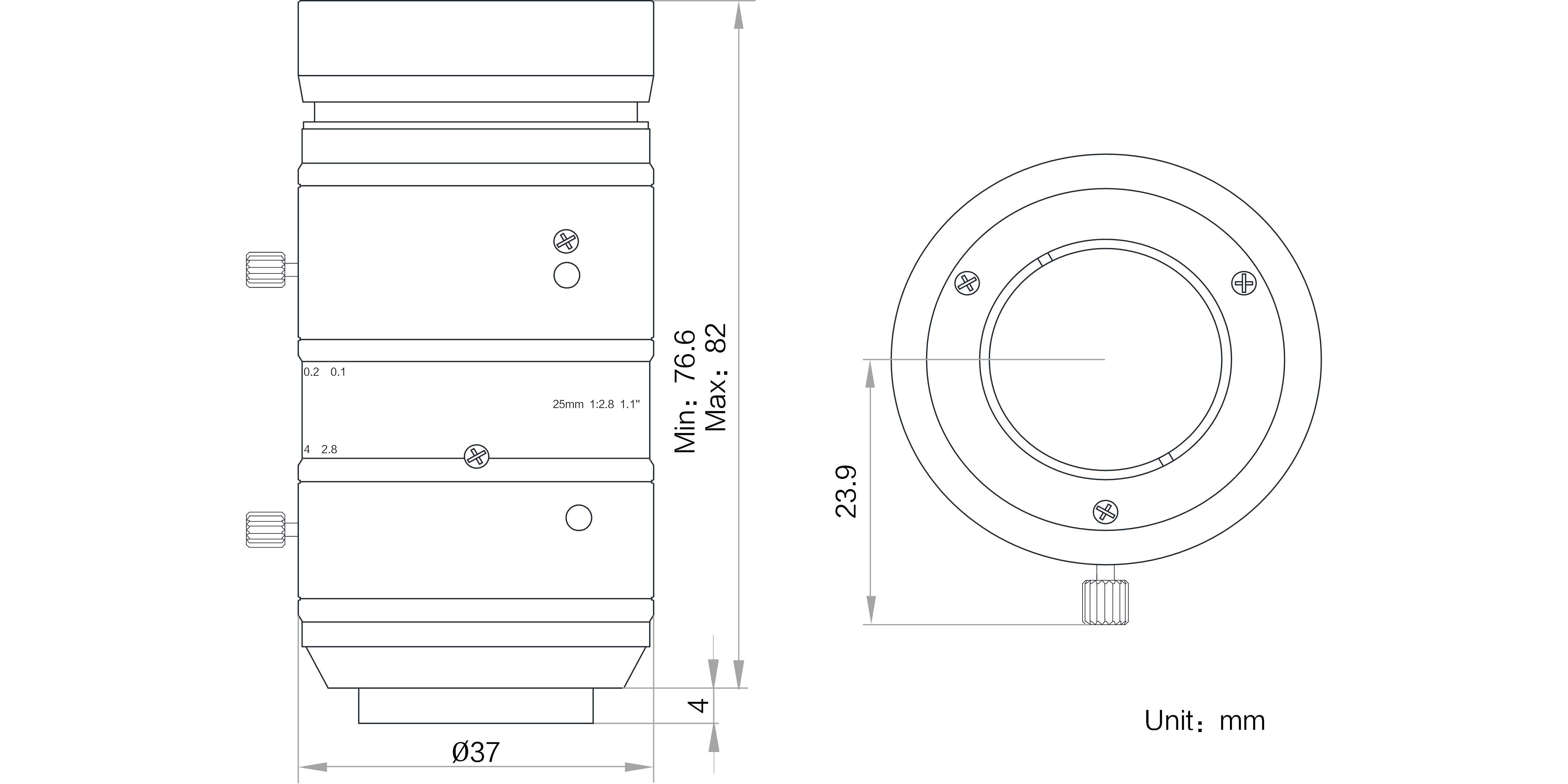 | 名称 | 25mm,F2.8,1.1",1200万分辨率,C接口镜头 | |