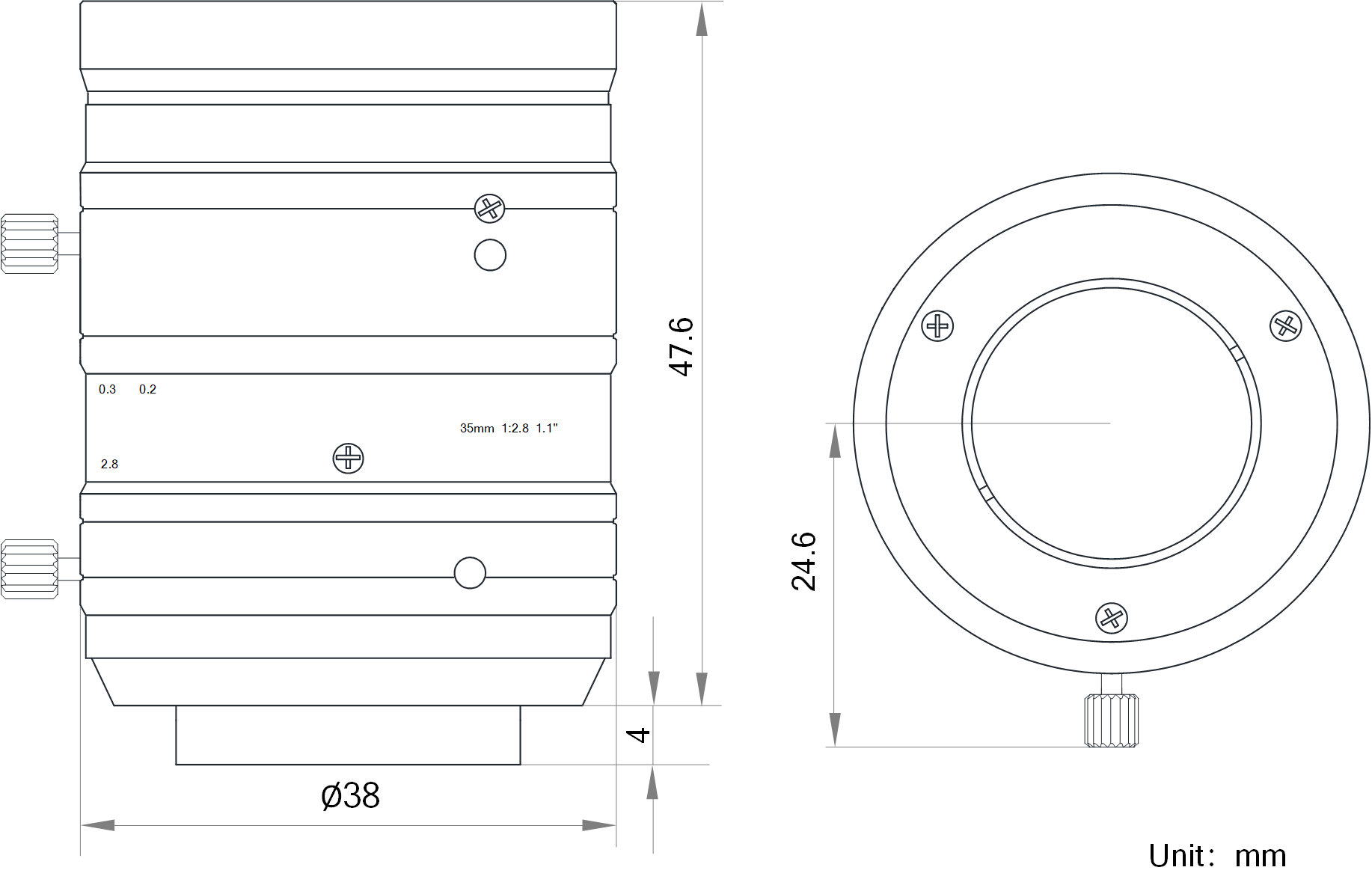 | 名称 | 35mm,F2.8,1.1",1200万分辨率,C接口镜头 | |
