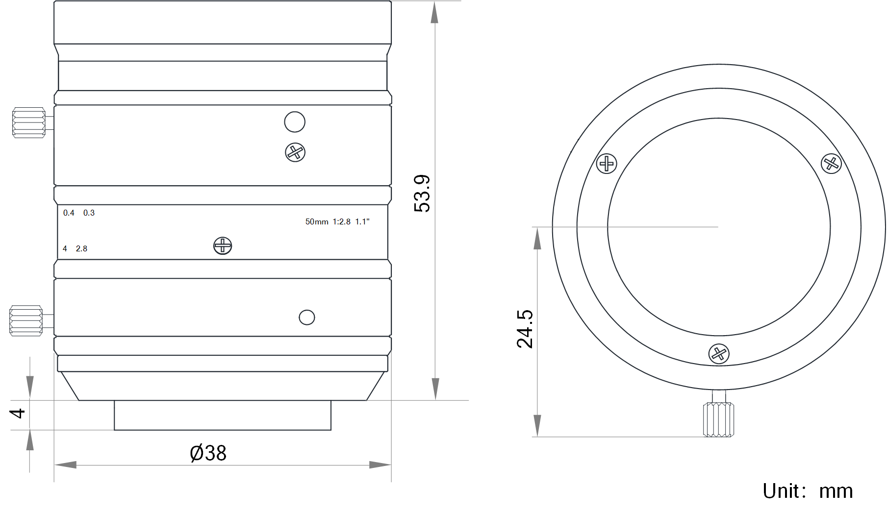 | 名称 | 50mm,F2.8,1.1",1200万分辨率,C接口镜头 | |