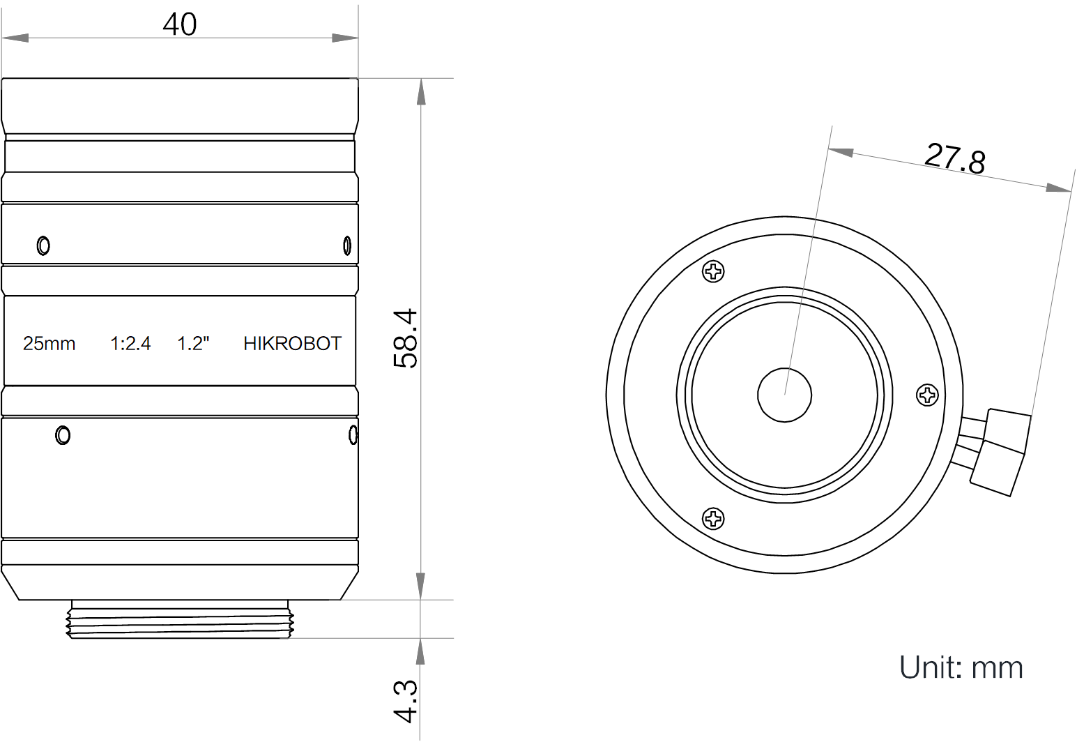| 名称 | 25mm,F2.4,1.2",2500万分辨率,C接口镜头 | |