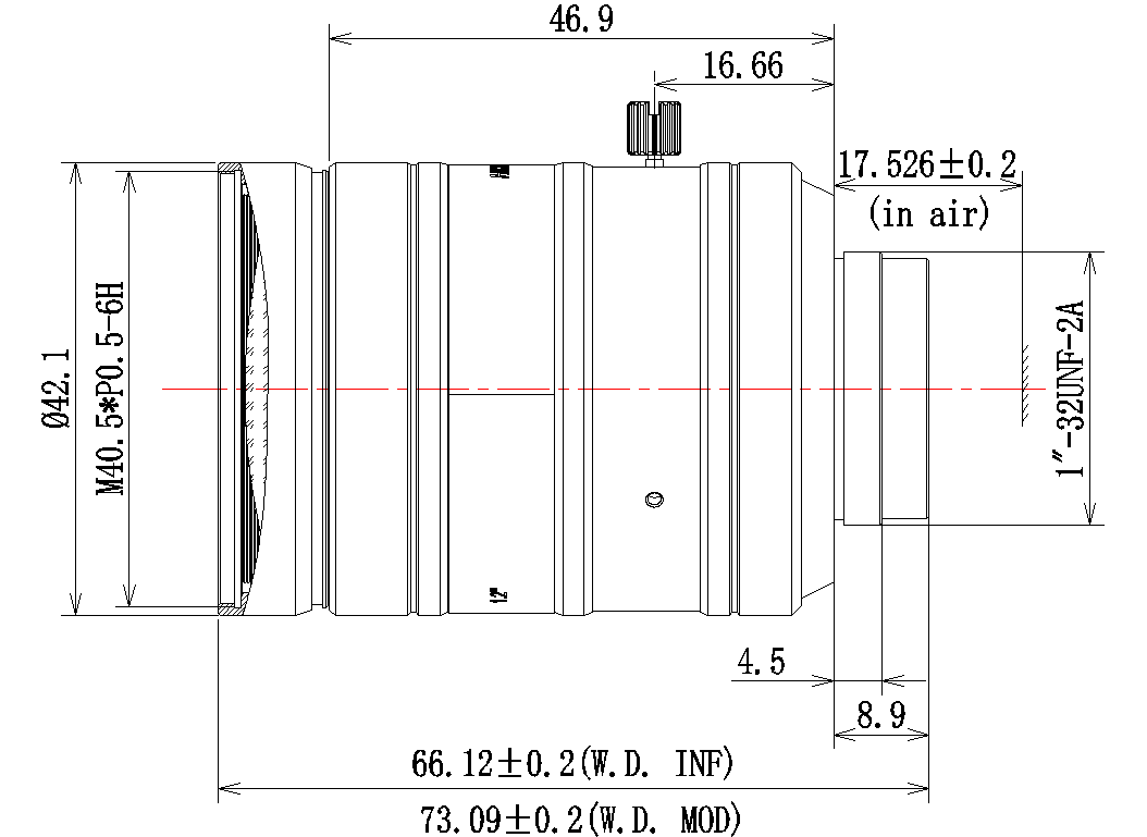 | 名称 | 16mm,F4固定光圈,1.2",2500万分辨率,C接口镜头 | |