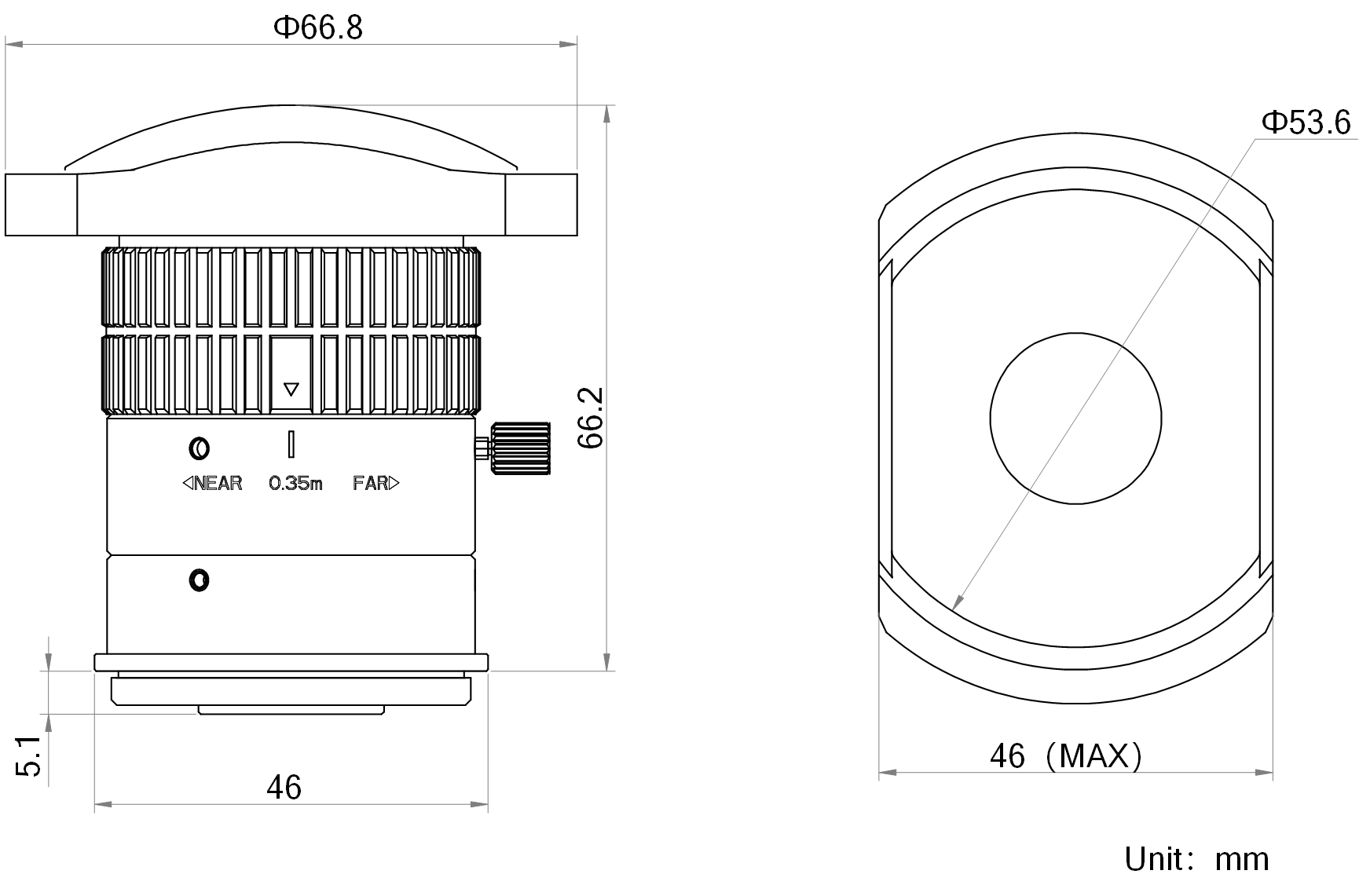 | 名称 | 4.6mm焦距,1000万分辨率镜头,0.9”,F1.8,M42接口 | |