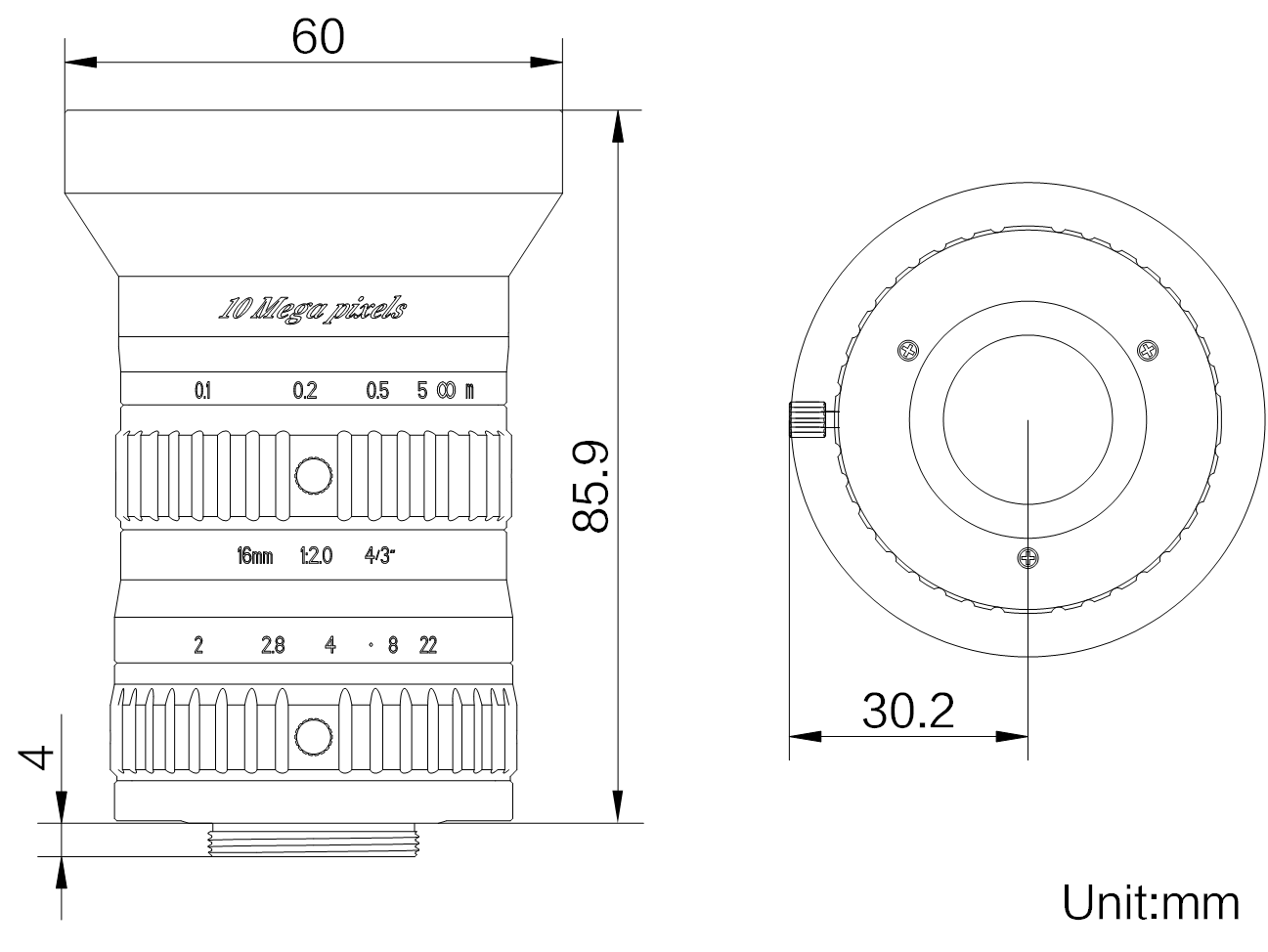 | 名称 | 16mm,F2.0,4/3",1000万分辨率,C接口镜头 | |