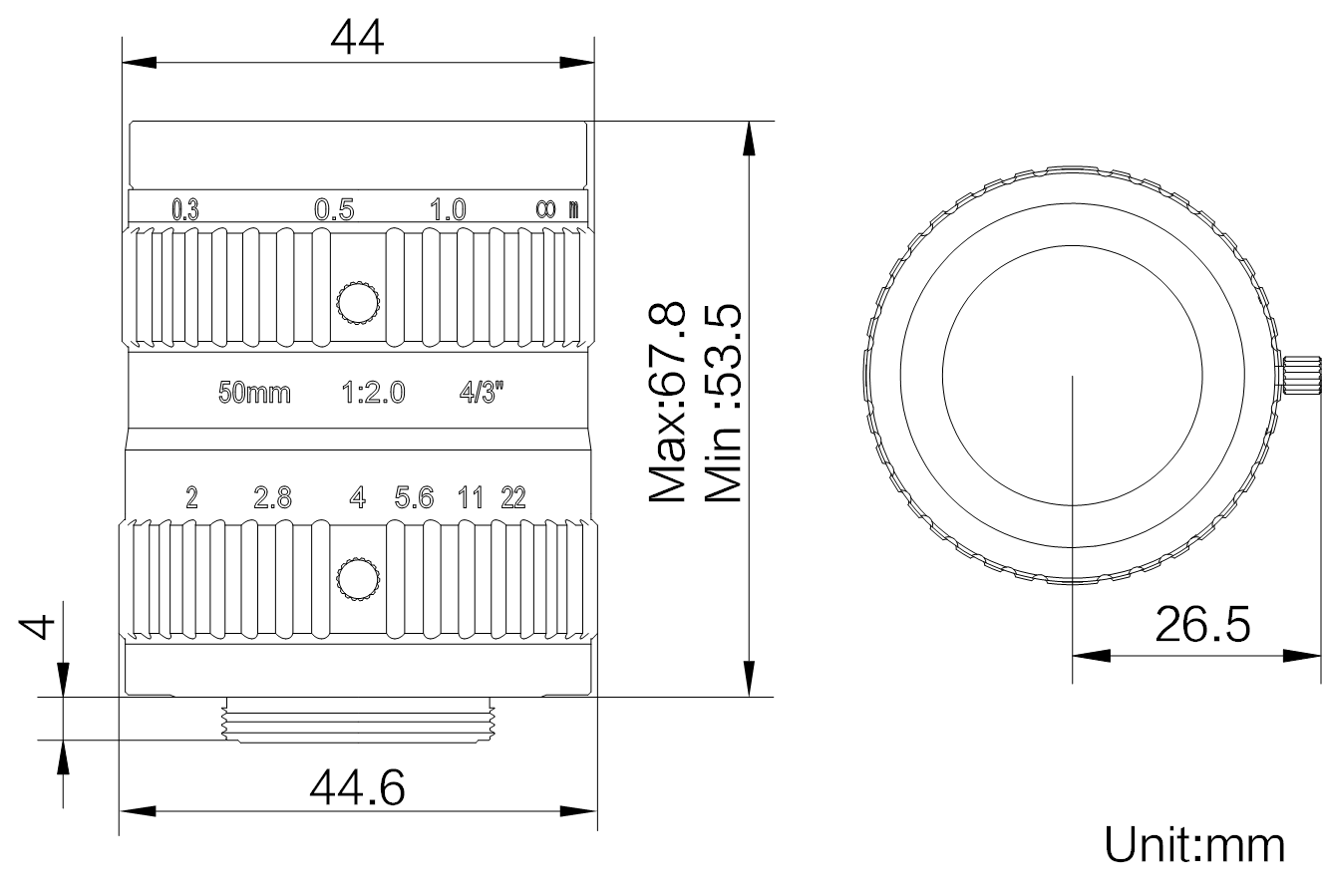 | 名称 | 50mm,F2.0,4/3",1000万分辨率,C接口镜头 | |