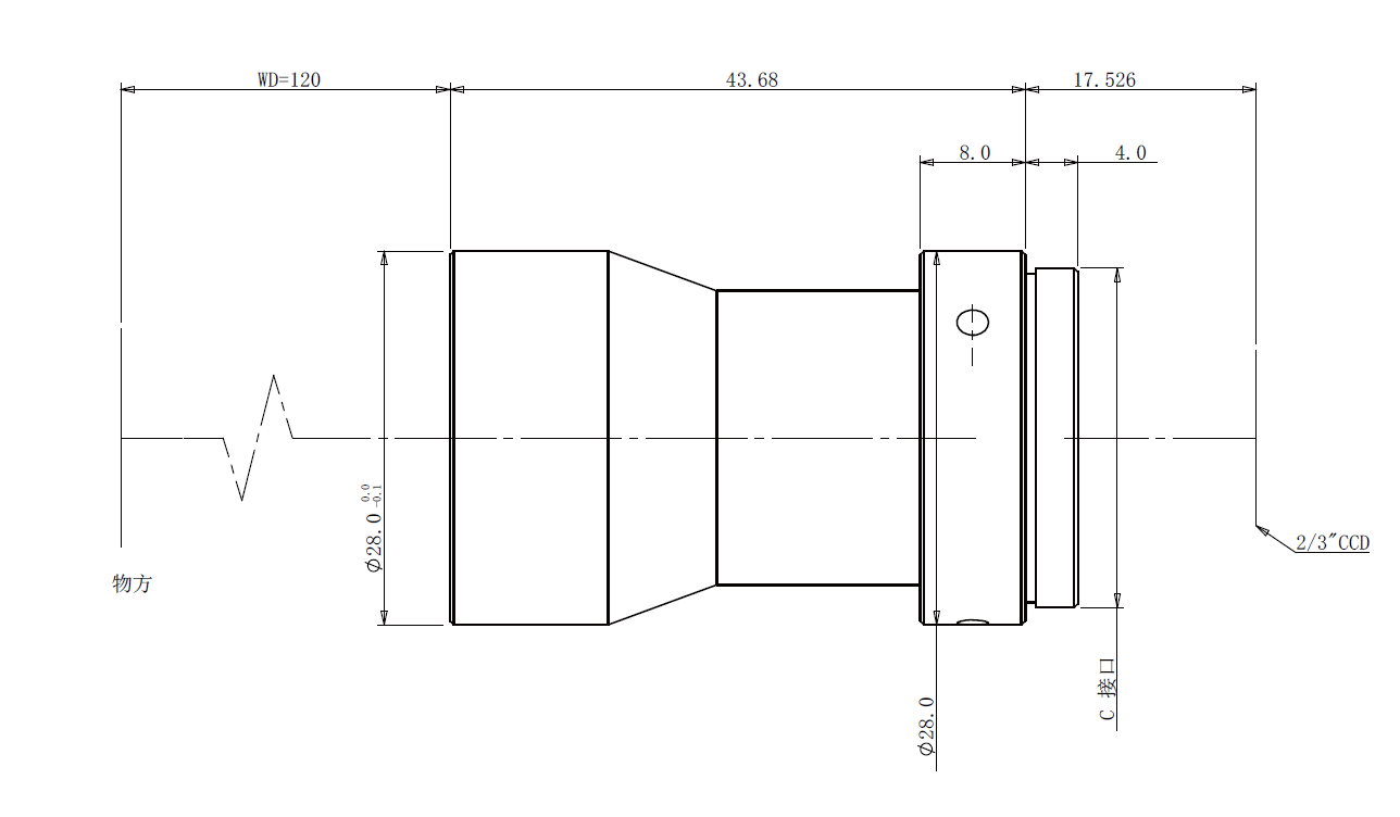 | 名称 | 120mm工作距,2/3",0.27x,不带同轴光接口 | |