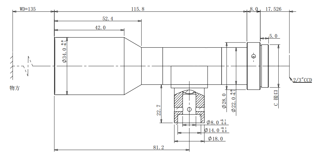 | 名称 | 135mm工作距,2/3",0.45x,带同轴光接口 | |