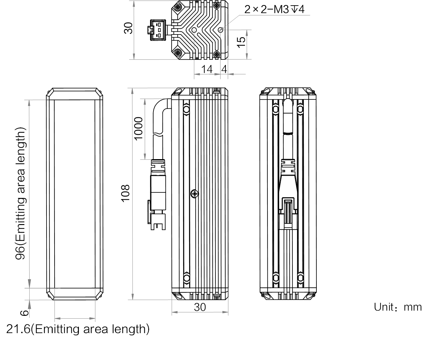 | 发光区尺寸 | 96 mm × 21.6 mm | |
