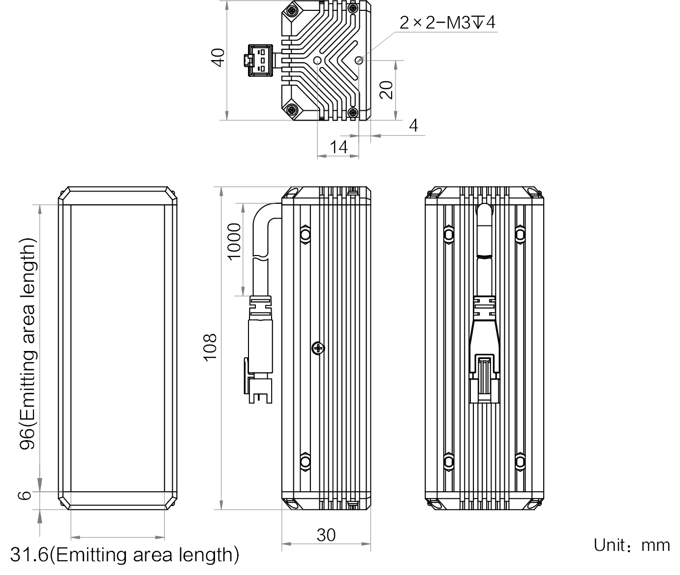 | 发光区尺寸 | 96 mm × 31.6 mm | |