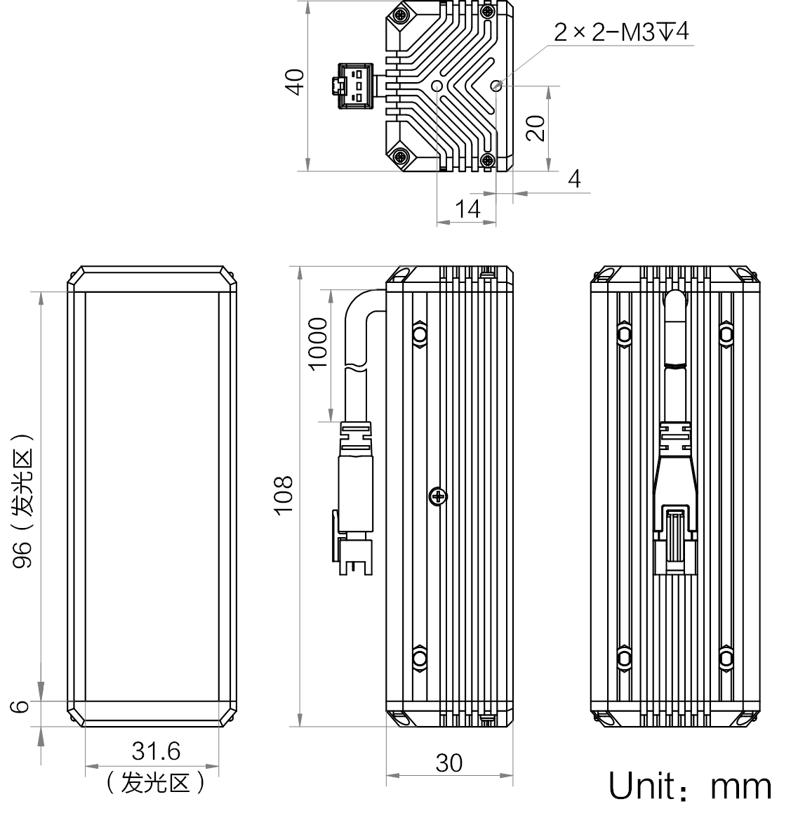 | 发光区尺寸 | 96 mm × 31.6 mm | |