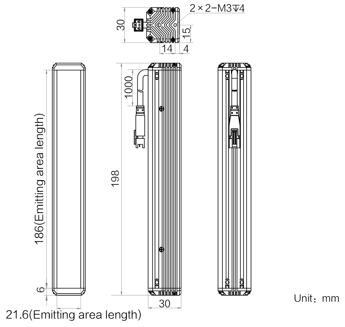 | 发光区尺寸 | 186 mm × 21.6 mm | |
