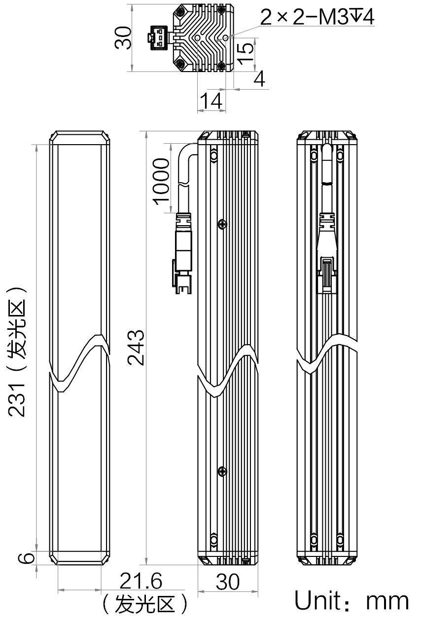 | 发光区尺寸 | 231 mm × 21.6 mm | |
