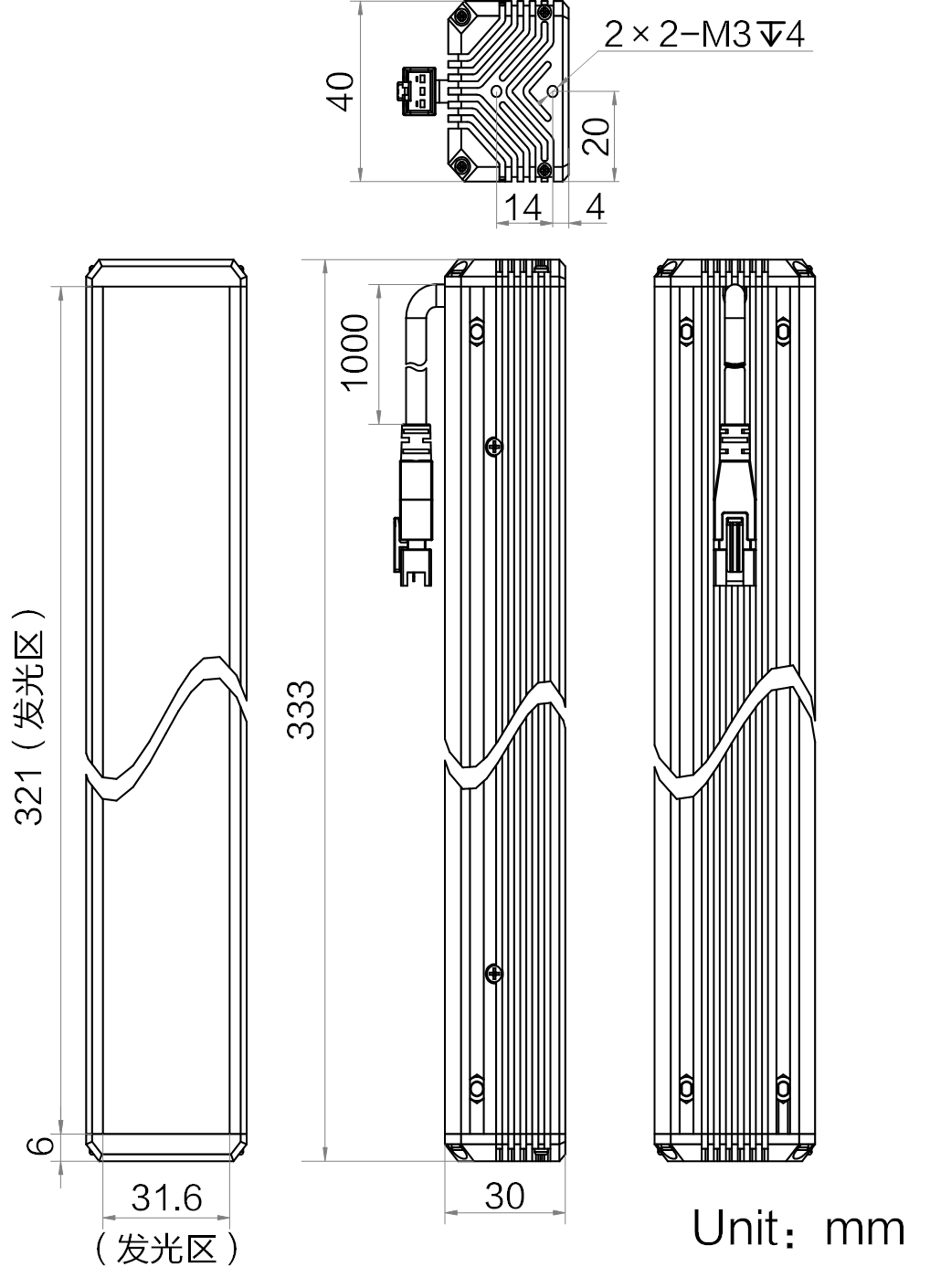 | 发光区尺寸 | 321 mm × 31.6 mm | |