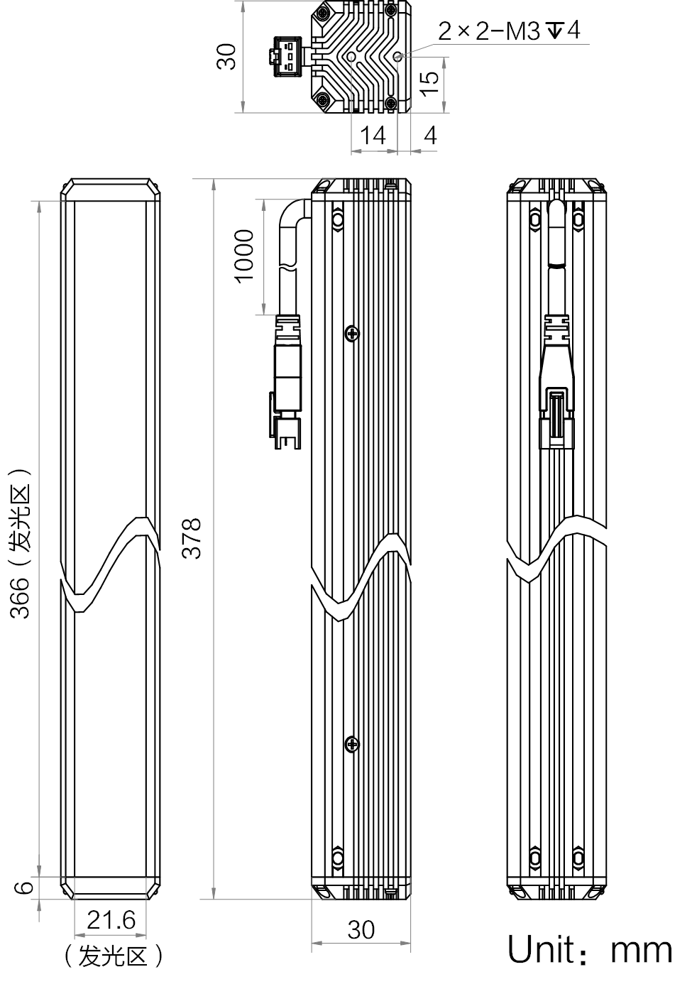 | 发光区尺寸 | 366 mm × 21.6 mm | |