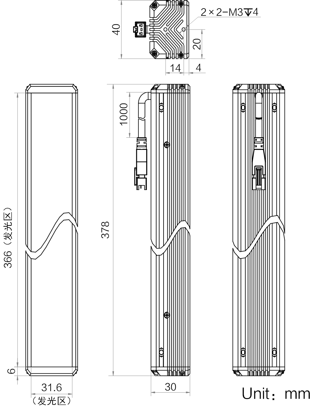 | 发光区尺寸 | 366 mm × 31.6 mm | |