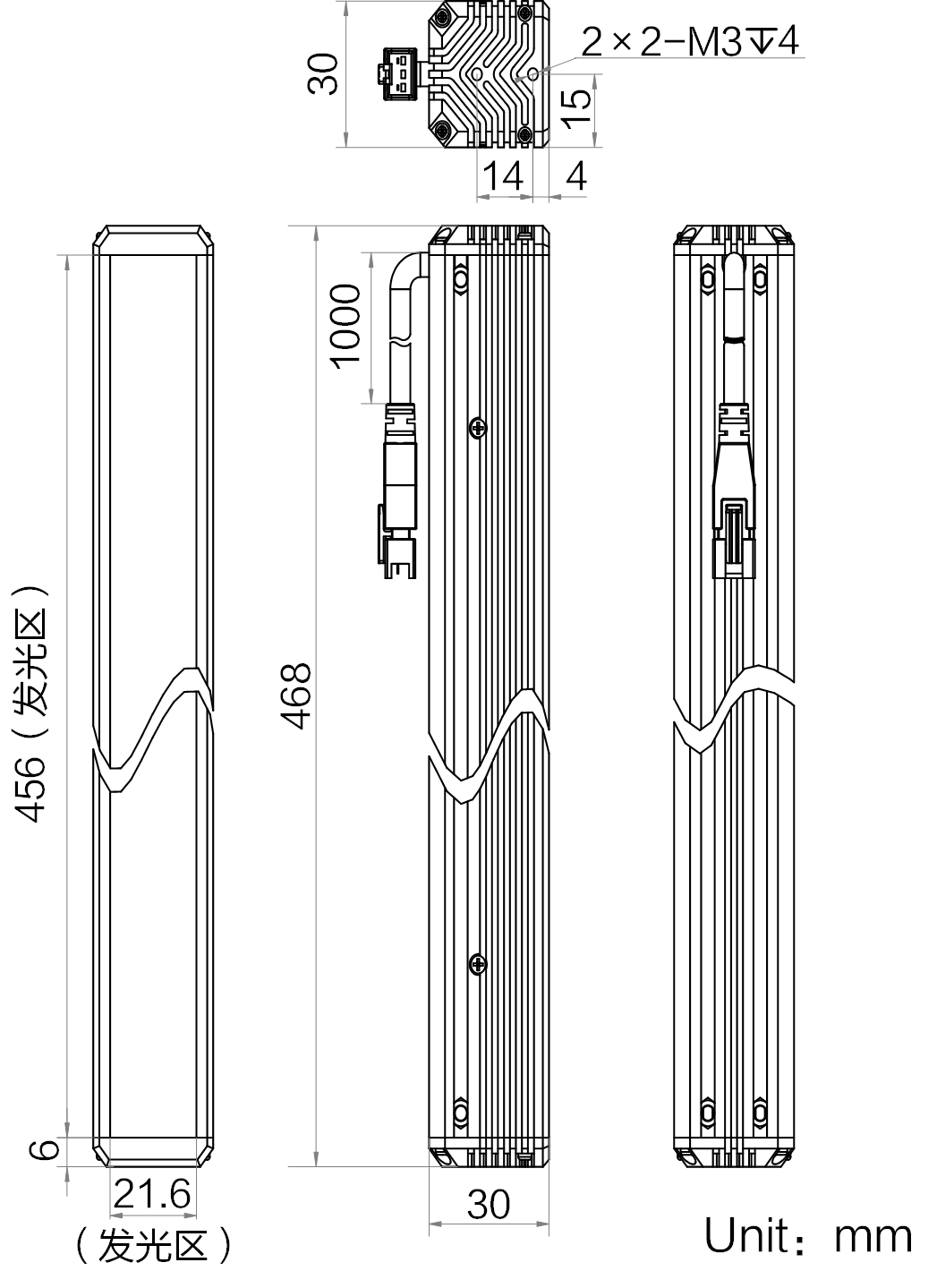| 发光区尺寸 | 456 mm × 21.6 mm | |