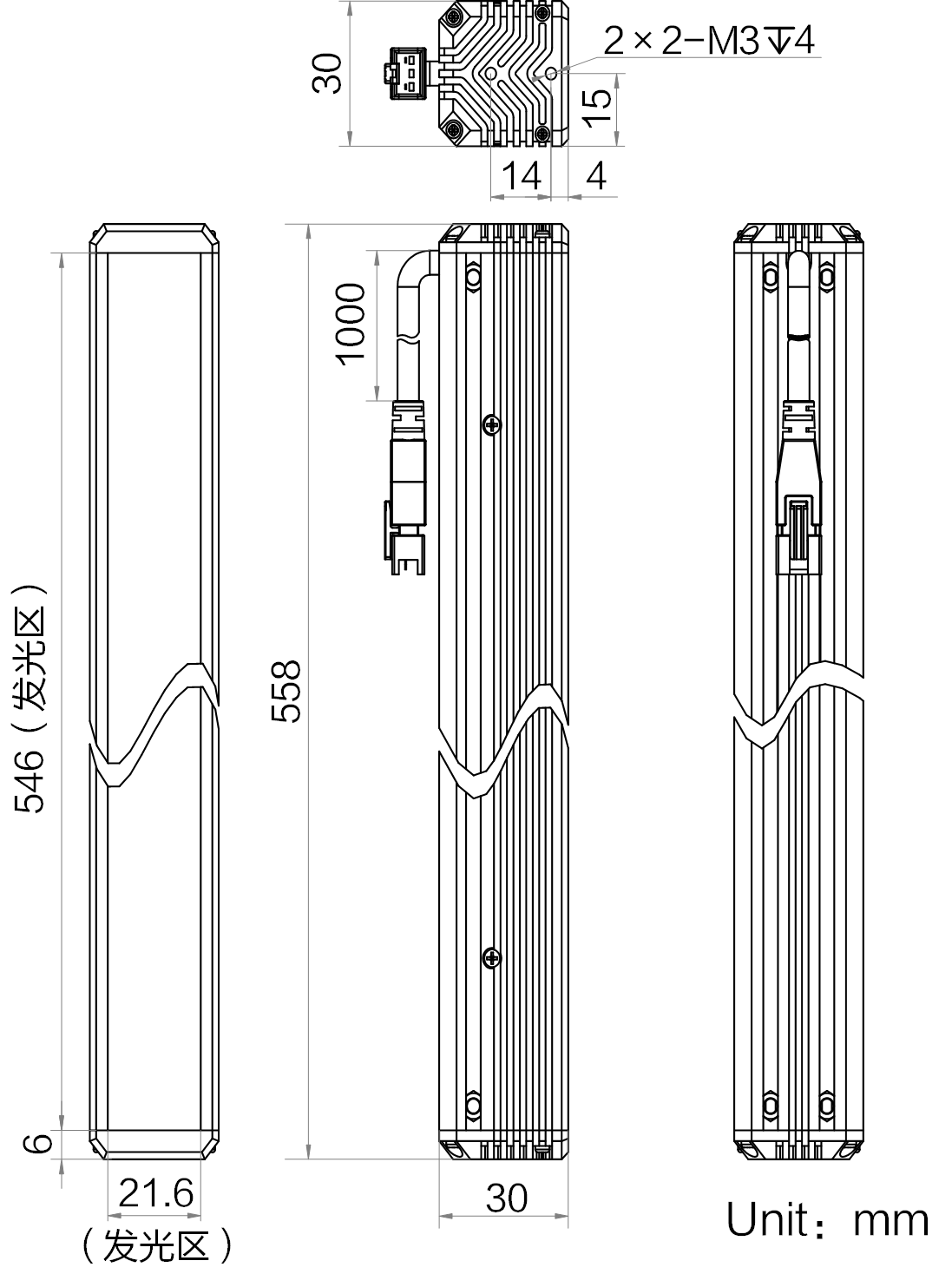 | 发光区尺寸 | 546 mm × 21.6 mm | |