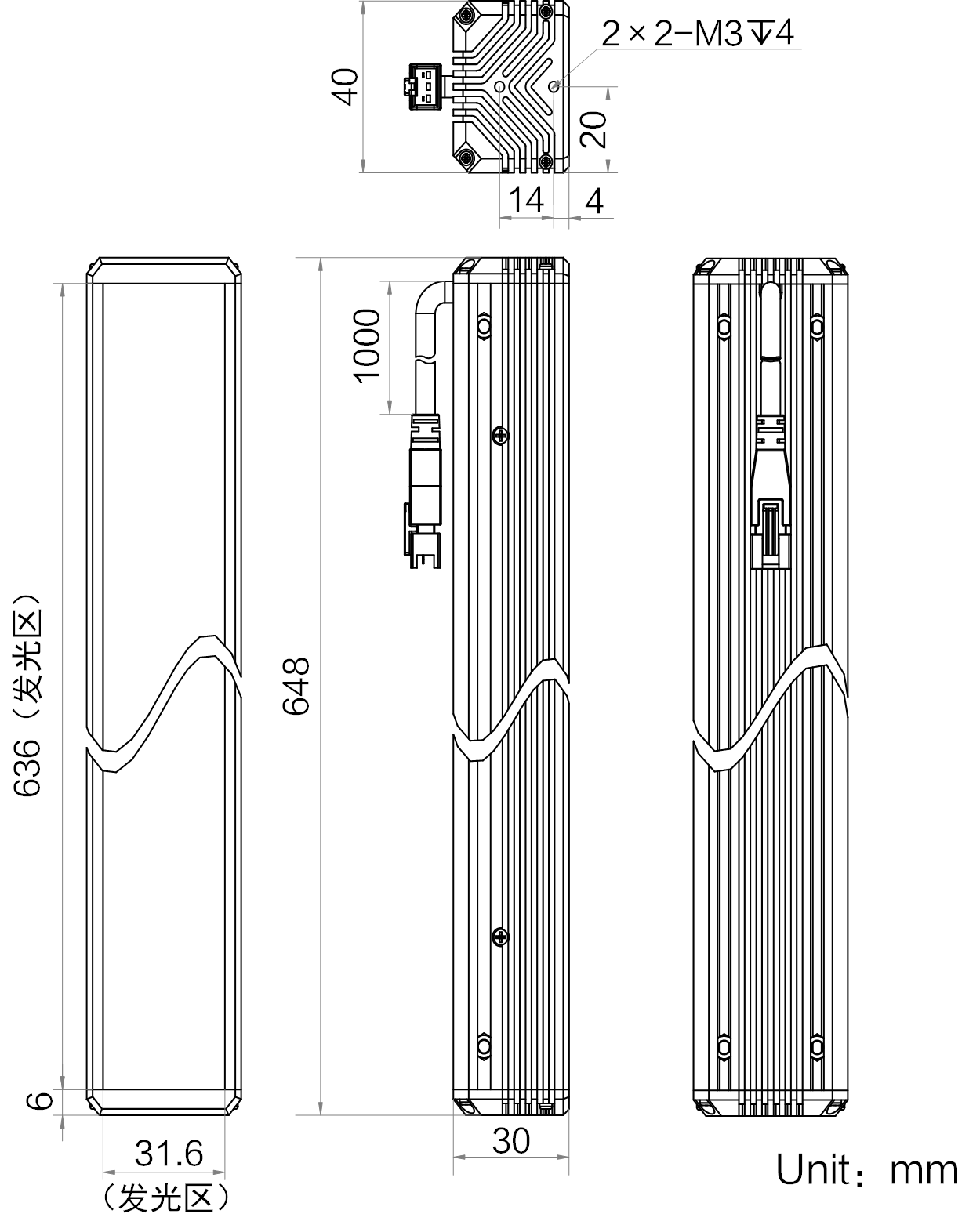 | 发光区尺寸 | 636 mm × 31.6 mm | |