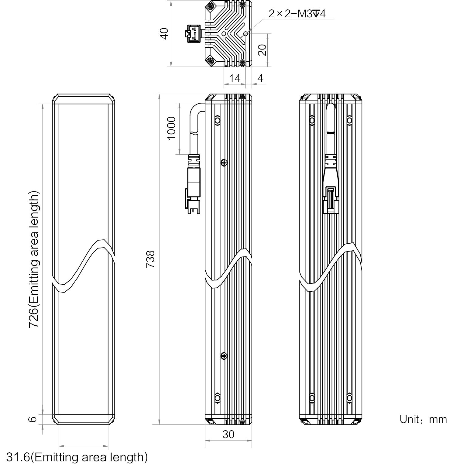 | 发光区尺寸 | 726 mm × 31.6 mm | |
