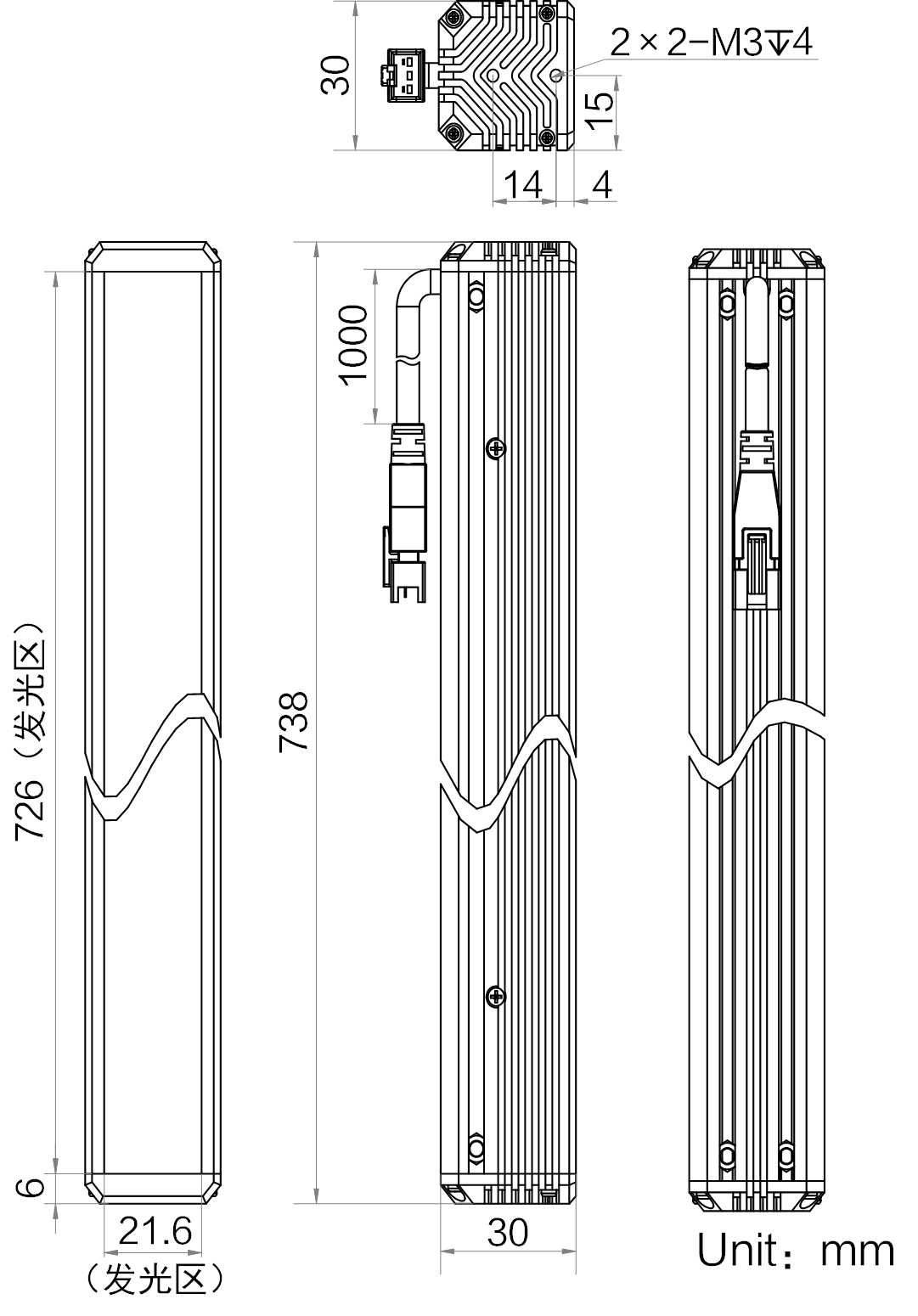| 发光区尺寸 | 726 mm × 21.6 mm | |