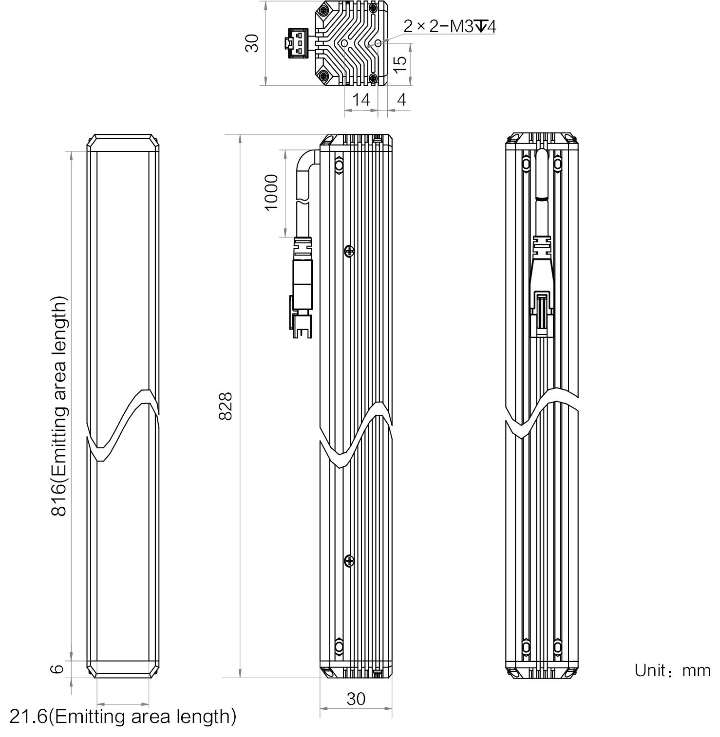 | 发光区尺寸 | 816 mm × 21.6 mm | |