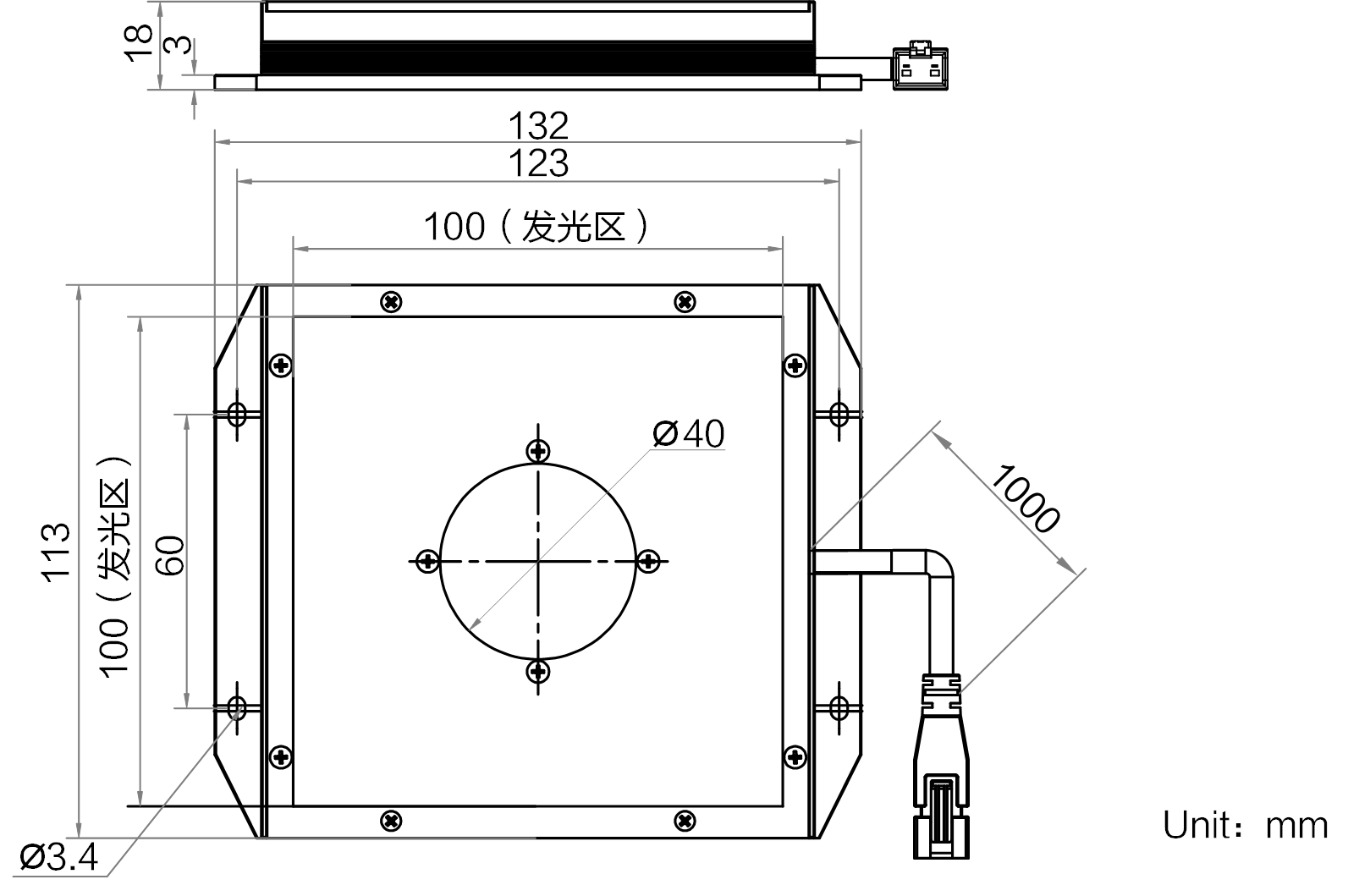 | 发光区尺寸 | 100 mm × 100 mm | |