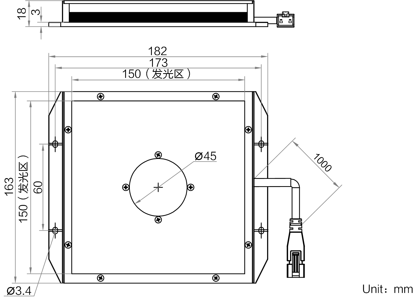 | 发光区尺寸 | 150 mm × 150 mm | |