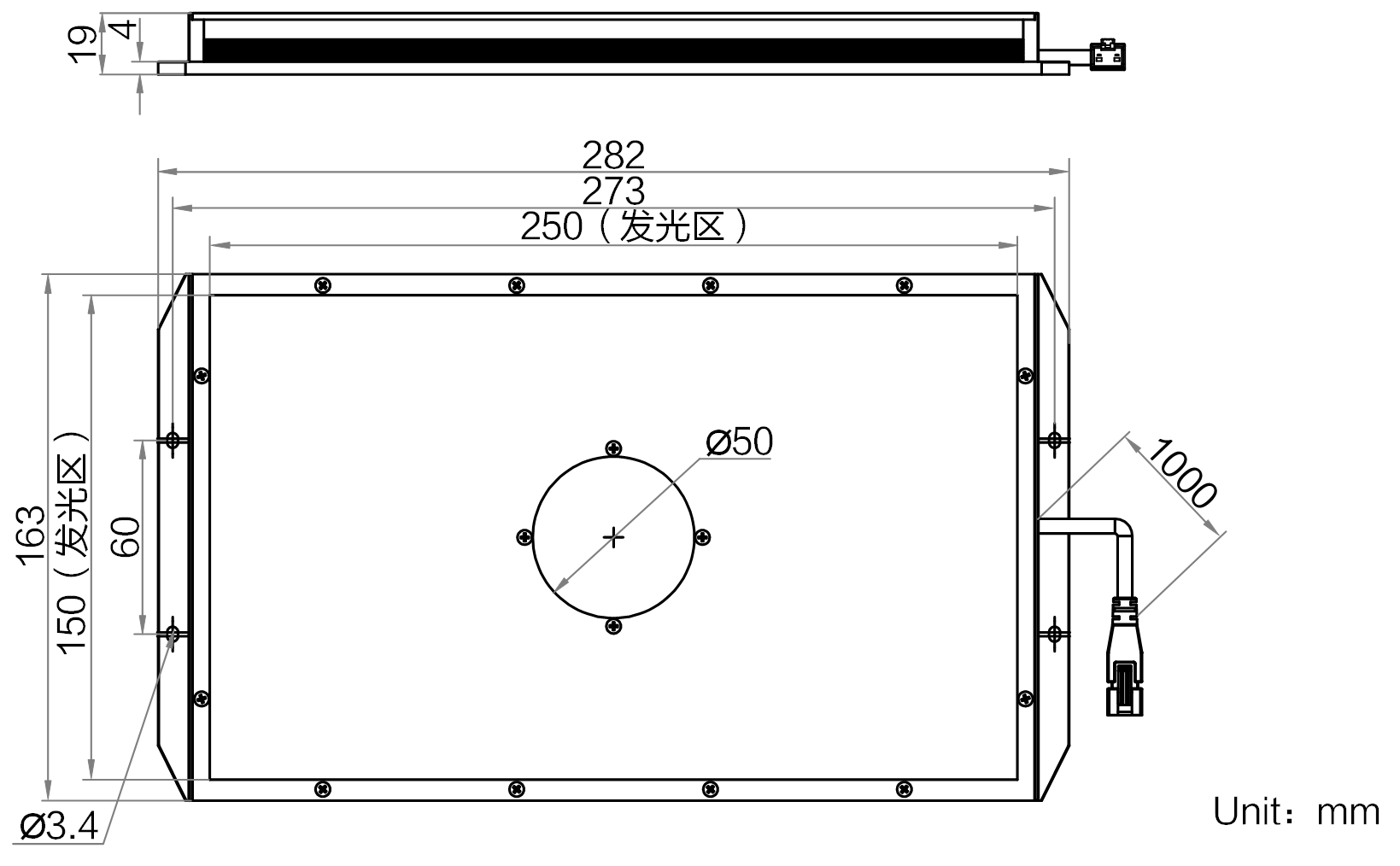 | 发光区尺寸 | 250 mm × 150 mm | |