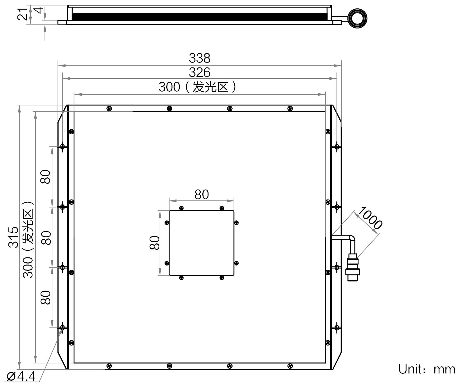 | 发光区尺寸 | 300 mm × 300 mm | |