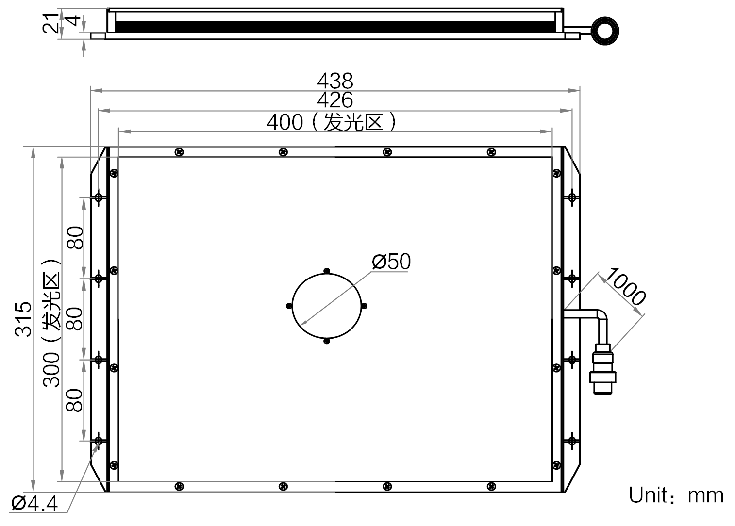 | 发光区尺寸 | 400 mm × 300 mm | |