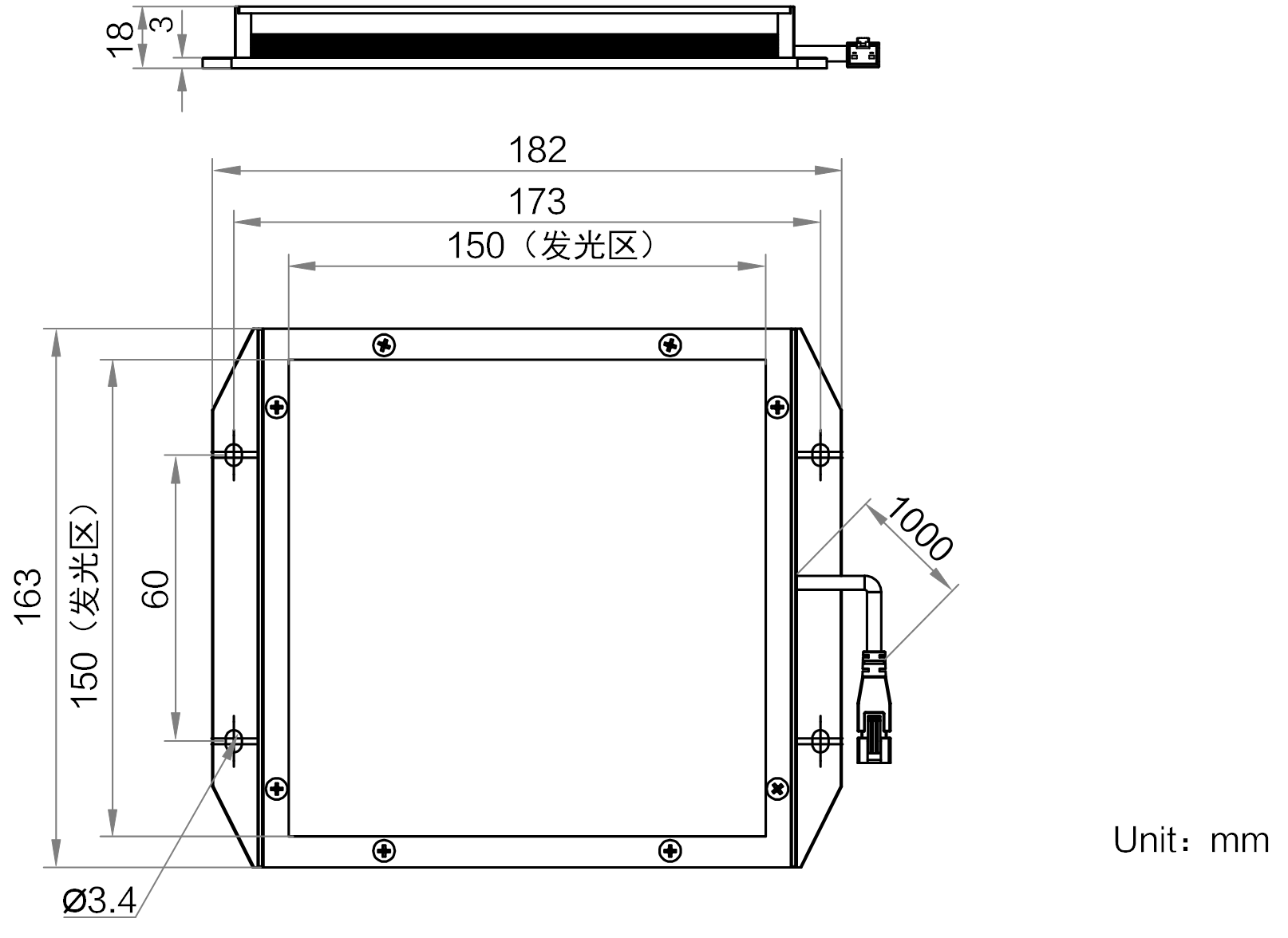 | 发光区尺寸 | 150 mm × 150 mm | |