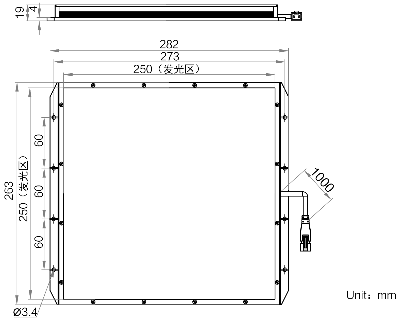 | 发光区尺寸 | 250 mm × 250 mm | |