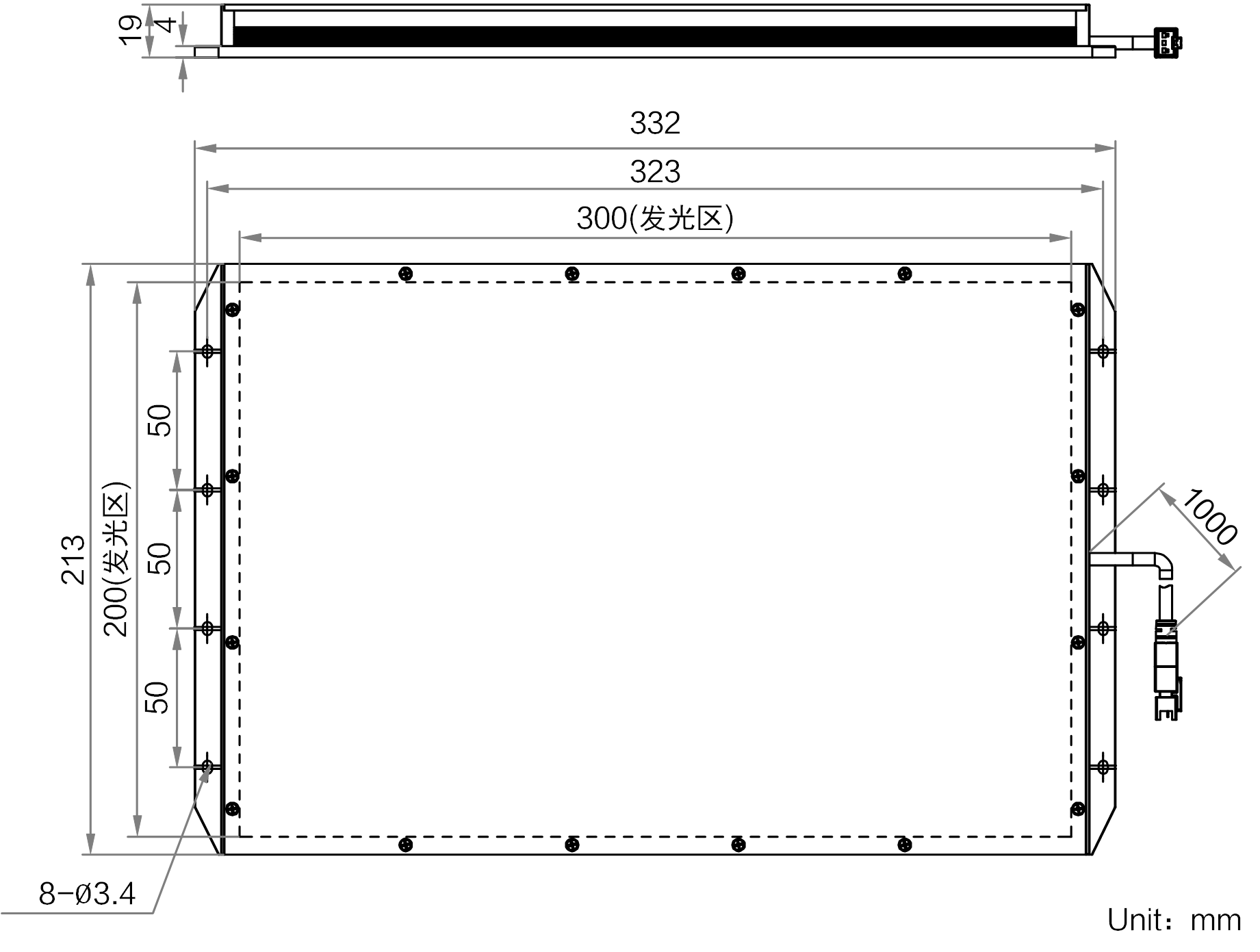 | 发光区尺寸 | 300 mm × 200 mm | |