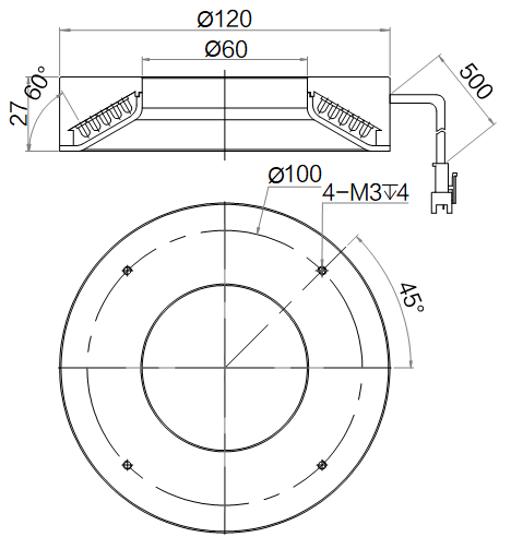 HIKROBOT 海康机器人 MV-LRDS-120-60-W 光源 型号 型号 MV-LRDS-120-60-W 名称 环形光源MV-LRDS-120-60-W 性能 颜色 White 波长 / 色温 6000~7000K 照射角度 60° 电气特性 接口类型 SMR-03V-B 功率 14 W 结构 灯珠排数 5 供电线长度 500 mm 外形尺寸 Ø120 × 27 mm 外形直径 Ø 120 mm 开孔孔径 Ø60 mm 温度 工作温度0~40°C,储藏温度-20~60°C 湿度 20~85%RH无冷凝 漫射板 Included 手机/微信:13682357734 电话:0755-84690029 QQ:2844337877 邮箱:2844337877@qq.com...