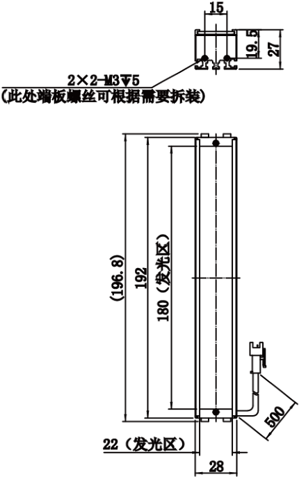 | 发光区直径 | 180 mm × 22 mm | |